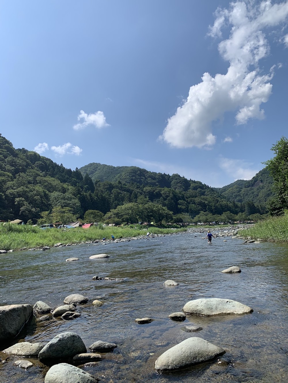 日帰りです。 繁忙期を過ぎていったので、ガラガラ。 青野原キャンプ場が川のむこうに見えました。あちらは少し混んでたかな。 水は綺麗で、冷たすぎることもなく、3歳の息子の川デビューに良かったです。 人気と聞いていましたが、川の中の石は苔が多く、人が入っている気配が…?滑らないように注意が必要です。石が入って痛いのでサンダルで入るより、ウォーターシューズの方がいいかな。 トイレは綺麗で、苦手な虫もほとんどいませんでした。 スタッフの方とは入退場の時しか関わりませんでしたが、丁寧に説明してくださり、気持ちよく送り出してくれました。 また行きたいと思える場所です。