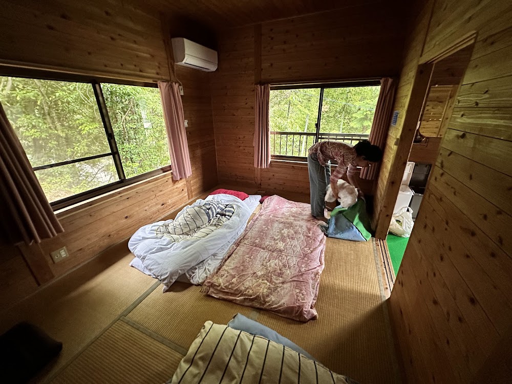 雨だったのでキャンプからコテージ泊に変更。 コテージは調理器具と人数分の紙皿が用意されていました。 炊飯器と焚き火台一つは無料貸し出しがあり便利でした。その他キャンプギアもレンタルがあるので、最低着替えさえあれば十分だと思います。ゴミは分別は必要ですが捨てて帰れます。 キャンプ場のオリジナルグッズありました。