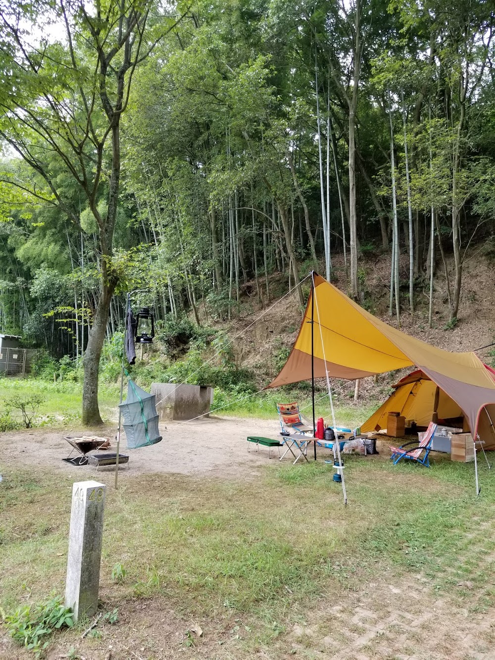 家族3人と犬1匹のキャンプデビュー。 GWが明けた週の土日に利用させていただきました。 サイトの指定不可ですが、管理等から近い車乗り入れができるところになり炊事場やトイレが近く便利でした。 前日の大雨のせいで予約客が少なかったようで、周辺のお客さんもご家族で来られていましたが、就寝時間には明かりを消して静かになり、皆さんマナーを守られていました。 夜遅くには台風並みの強風で不安になりましたが、テントが吹き飛ばされなくて良かったです。 トイレがウォシュレットだと良かったなーくらいで、共用炊事場はお湯も出て嬉しかったです。 管理棟のスタッフの方たちは皆さん親切で初心者にとってはありがたかったです。 一生の思い出になるキャンプデビューでした。