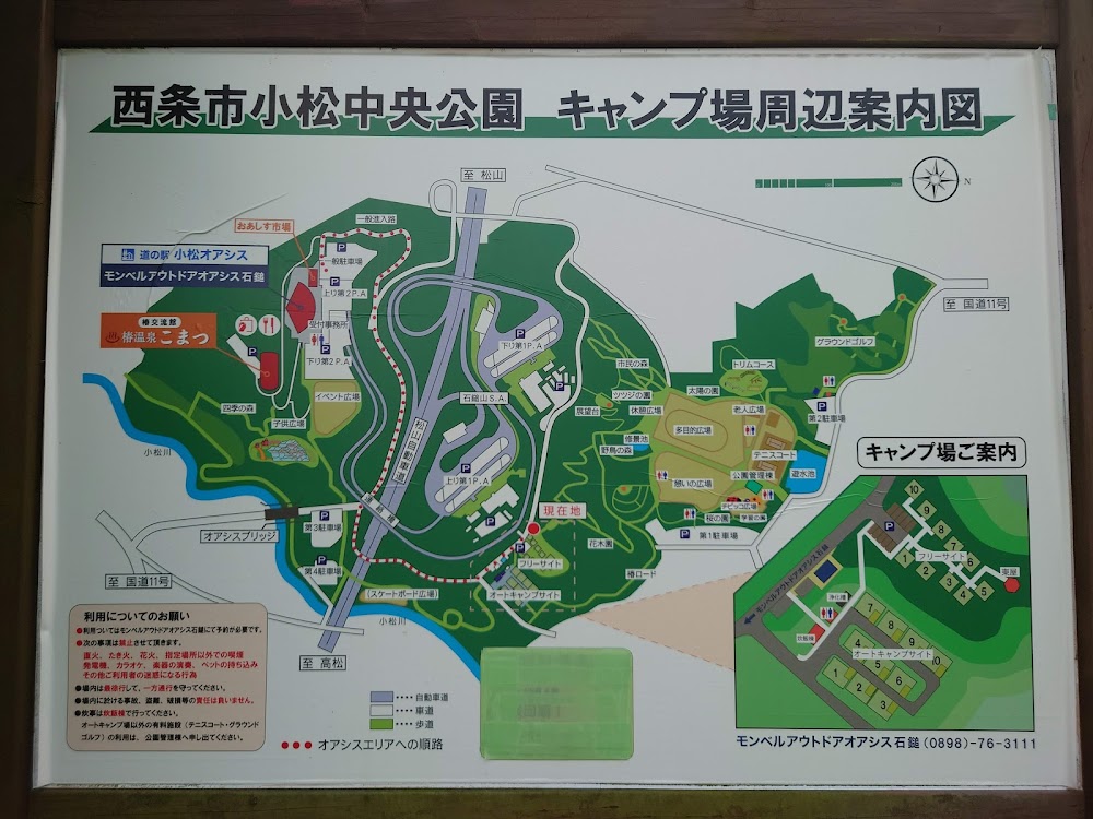 アウトドアブランドで有名な「モンベル」がプロデュースした、名峰・石鎚山の麓、クライミングピナクルなどを併設した大型複合施設内に整備されたキャンプ場です。 施設内ではアウトドアが満喫できる他、道の駅「小松オアシス」も併設されているので利便性も高いです。