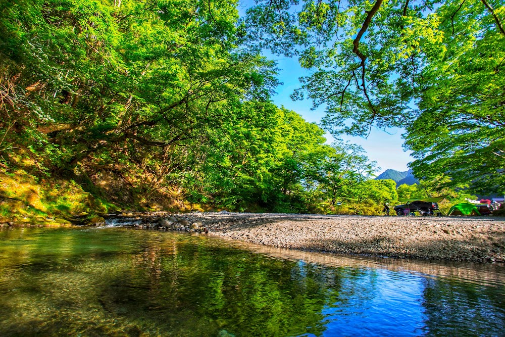 4歳の子どもと初めての夏キャンプでした。暑いので川がある所を選びました。川は、浅瀬と、少し深いところがあり楽しく遊べました。川の石が大きい箇所や流れが少し早い所もありますが比較的遊びやすい川だと思いました。 トイレや洗面台も綺麗で清潔感があり大変よかったです。 サイトに車が横付け出来ないので荷物の上げ下ろしに少し苦労しました。カートが貸し出し用であったので助かりましたが、坂がキツいので暑い中のでの準備は大変でした。 ですが子どもも、とても楽しめていたのでまた利用したいと思います。